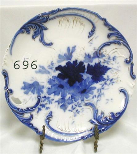 Steeple Mark RSP cobalt decorated keyhole scroll border plate – 9 ¼”