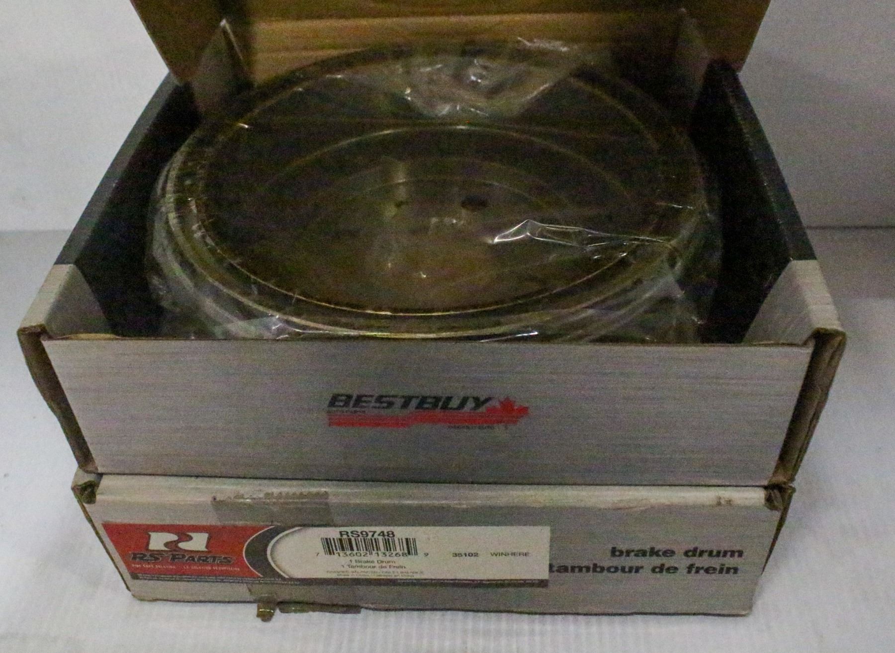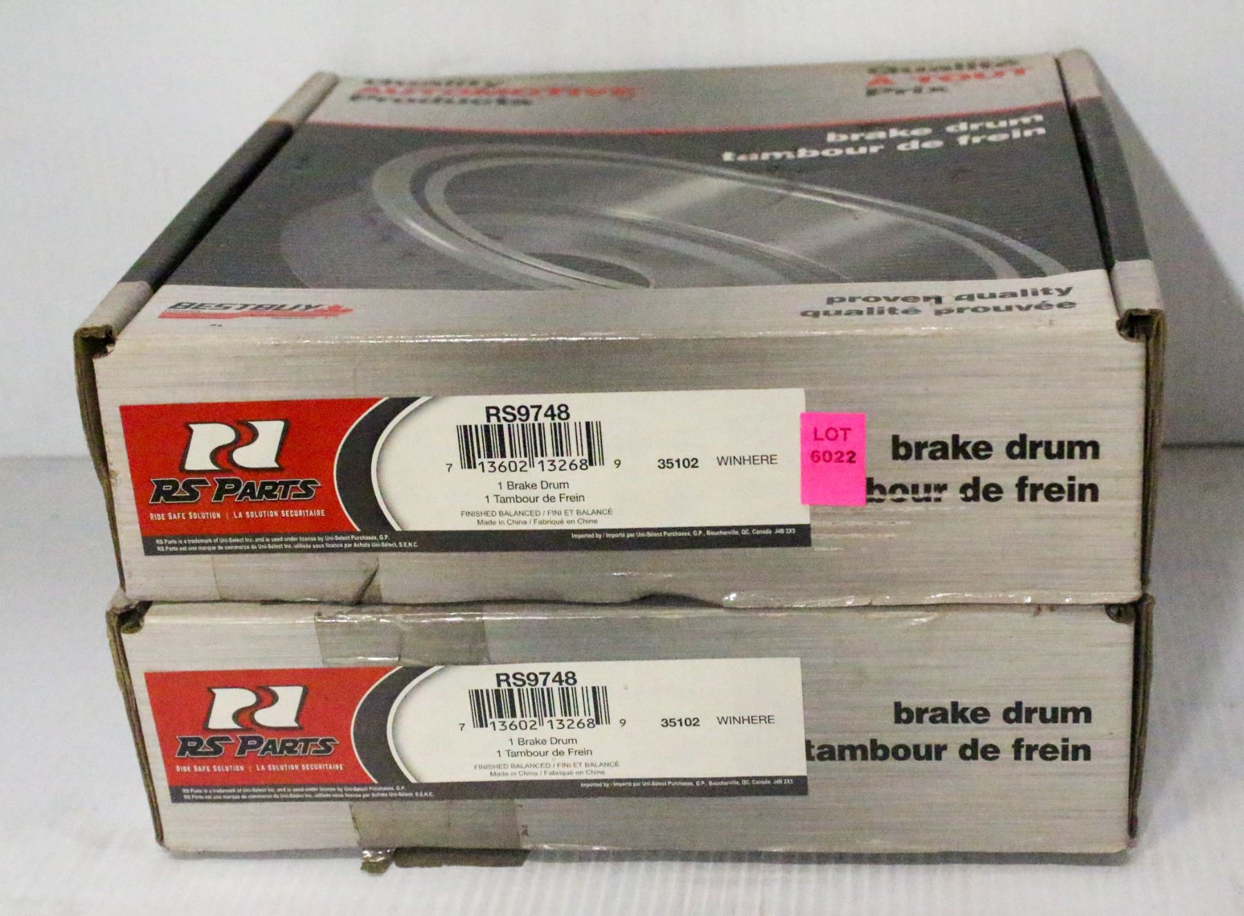 SET OF TWO RS PARTS REAR BRAKE DRUMS, PART NUMBER RS9748. SOLD AS A COMPLETE AXLE SET. DIRECT OEM-SPEC REPLACEMENTS FOR HYUNDAI ACCENT MODELS FROM 2003 TO 2006.