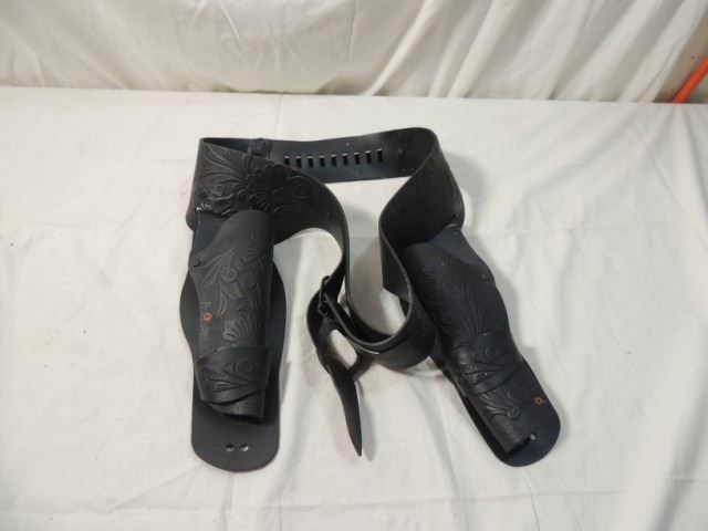 NICE DOUBLE HOLSTER, IN RUBBER OR VINYL, WITH TWO HOLSTERS, AND BULLET LOOPS, AS SHOWN.