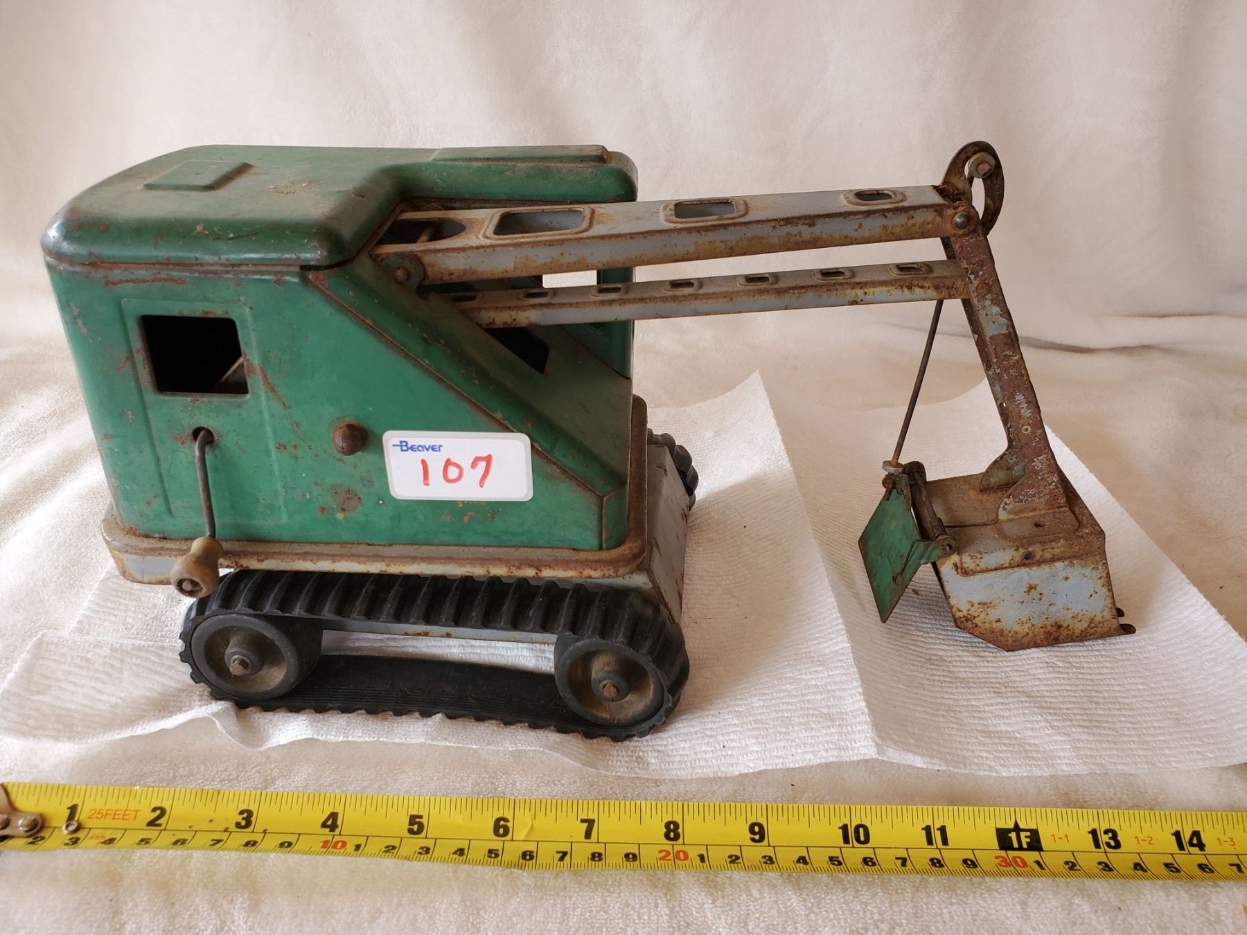 RUBBER TRACKED TOY EXCAVATOR GOOD ORIGINAL PAINT