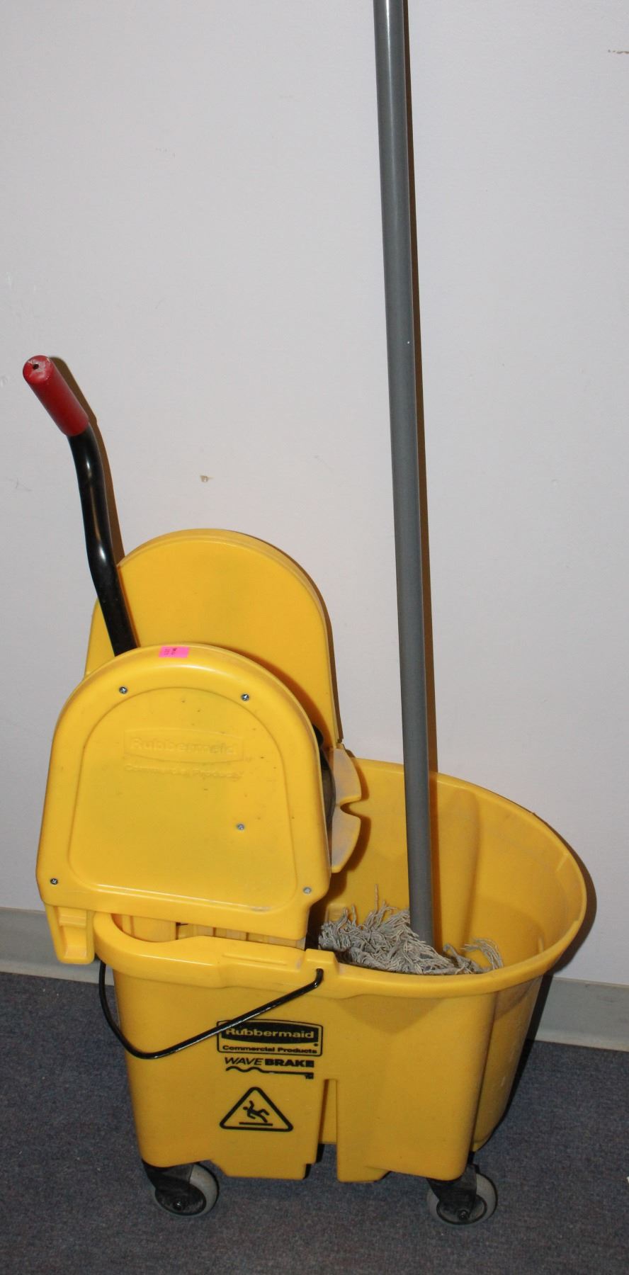 RUBBERMAID COMMERCIAL MOP BUCKET AND A MOP
