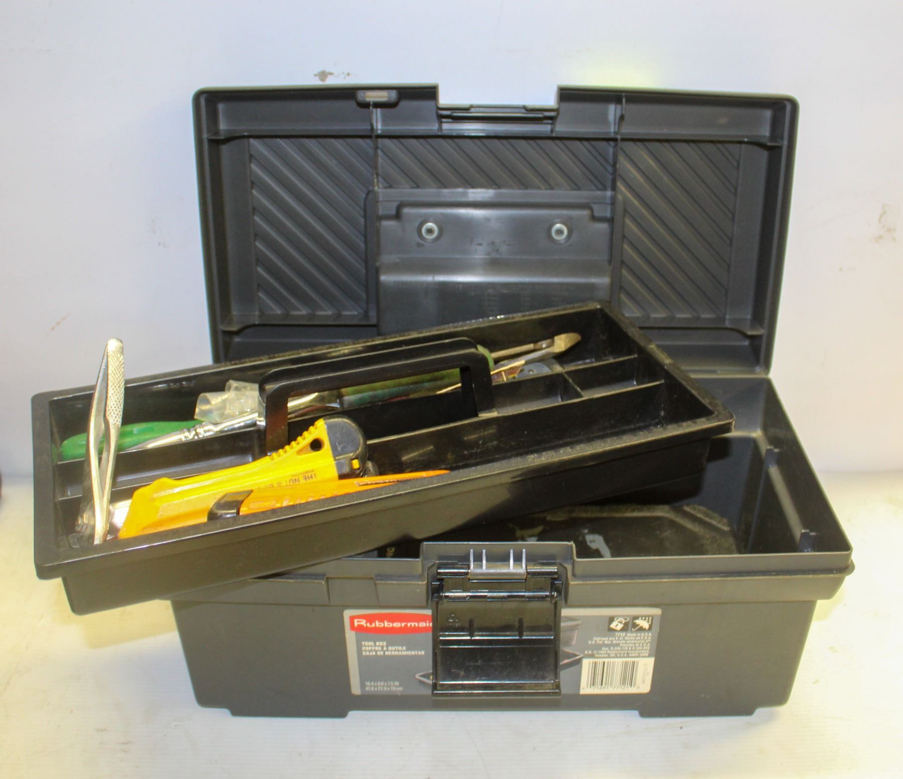RUBBERMAID TOOL BOX WITH ASSORTED TOOLS