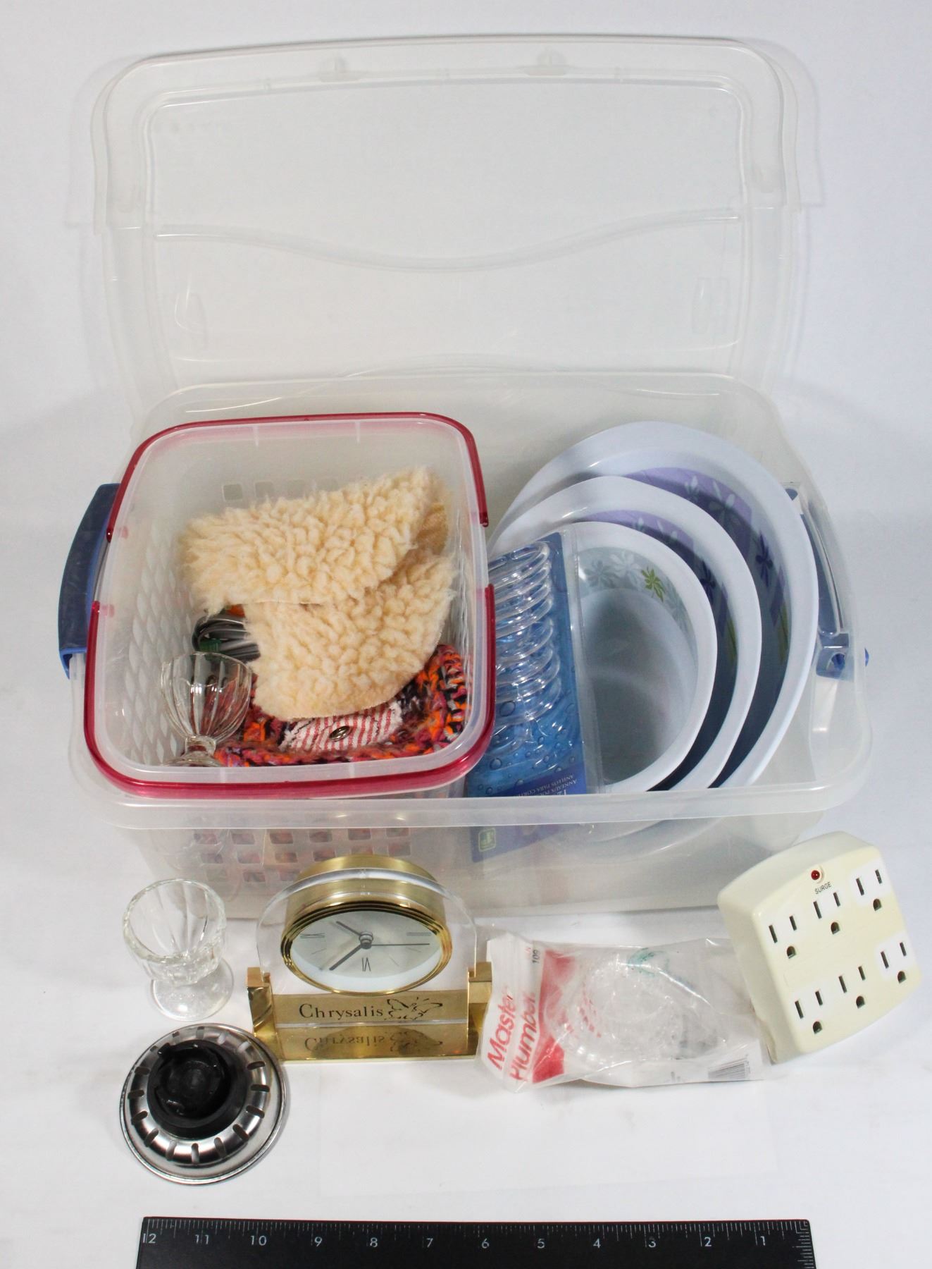 RUBBERMAID TOTE WITH HOME ITEMS,