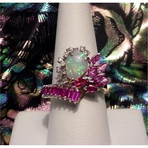 <tr><td>Title:RUBIES DIAMONDS AND OPAL CUSTOM MADE RING</td></tr>