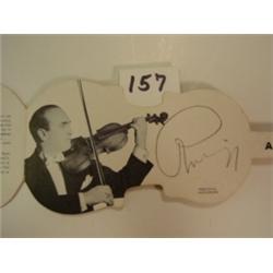 David Rubinoff signed cutout of his Stradivarius violin. Pencil signature inside foldout card stock instrument. Radio star with Eddie Cantor. Condition: Good