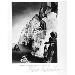 (1870 - 1965) American cosmetics marketer and manufacturer, one of America's first female business magnates and founder of the firm which yet bears her name. Fine oversize S.P. 11" x 14" b/w, a reproduction of a wonderful Surrealistic painted portrait of Rubenstein by Salvador Dali, boldly signed in the blank mount beneath the image. A couple of slight creases, otherwise very good condition, and ideal for display.