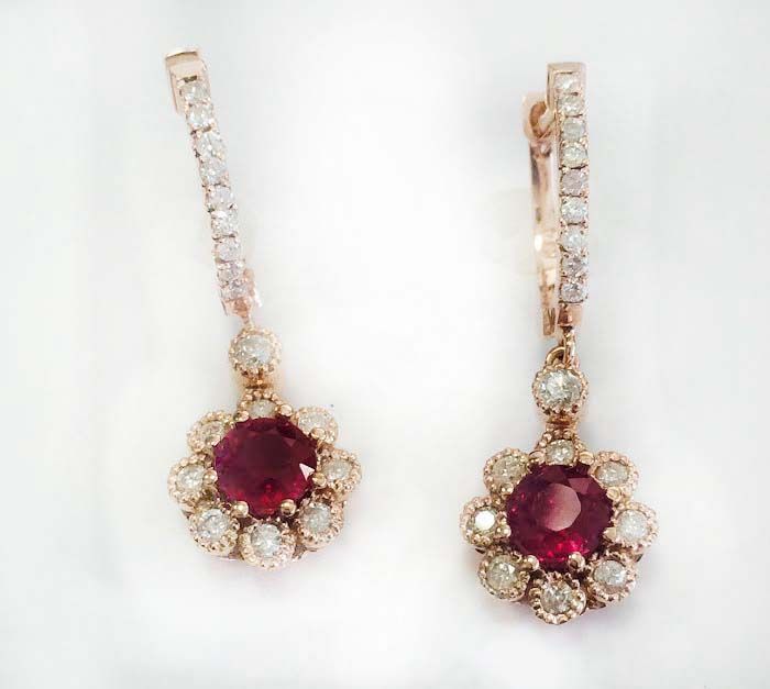 RUBY 1.47CT, 14K R/G EARRING 4.26GRAM / DIAMOND 0.71CT