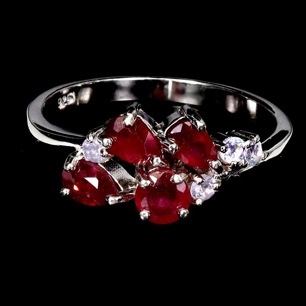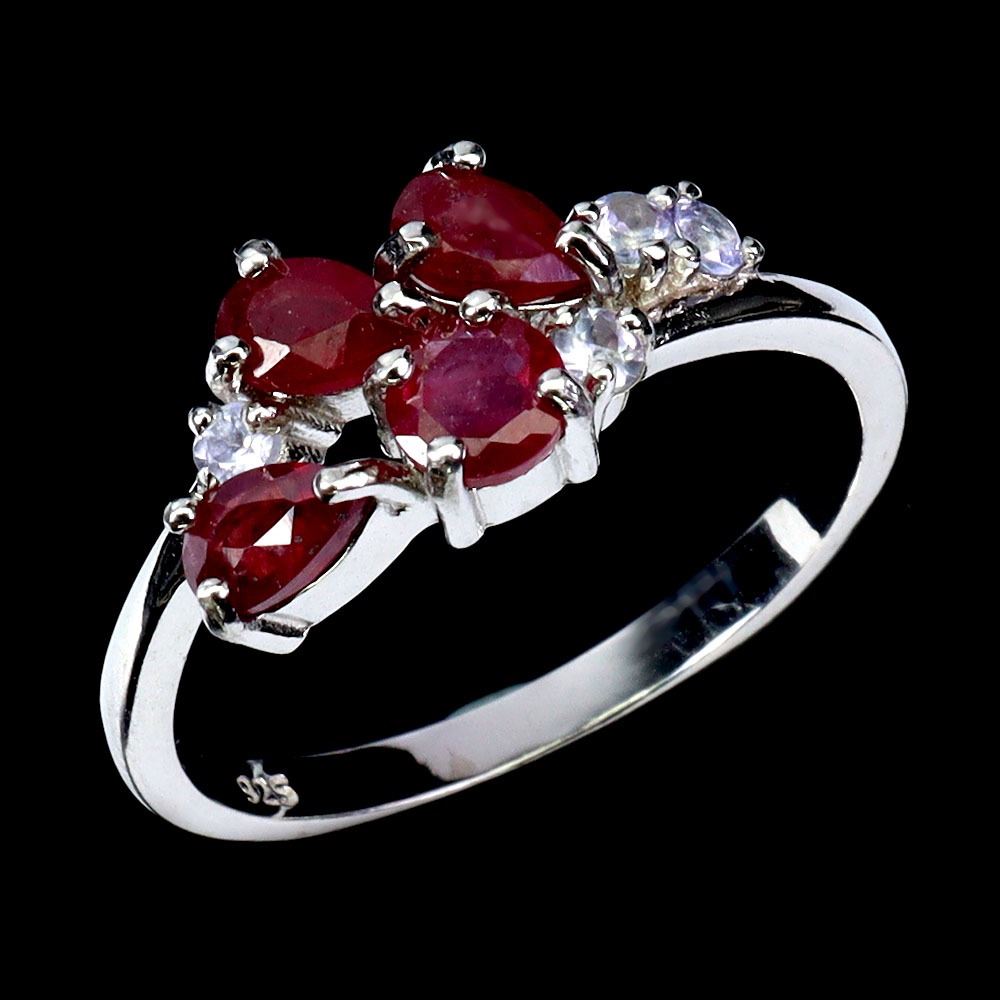 RUBY AND TANZANITE RING IN 14K WHITE GOLD PLATED OVER 925 STERLING SILVER - SIZE 7 - APPRAISED REPLACEMENT VALUE CAD 585