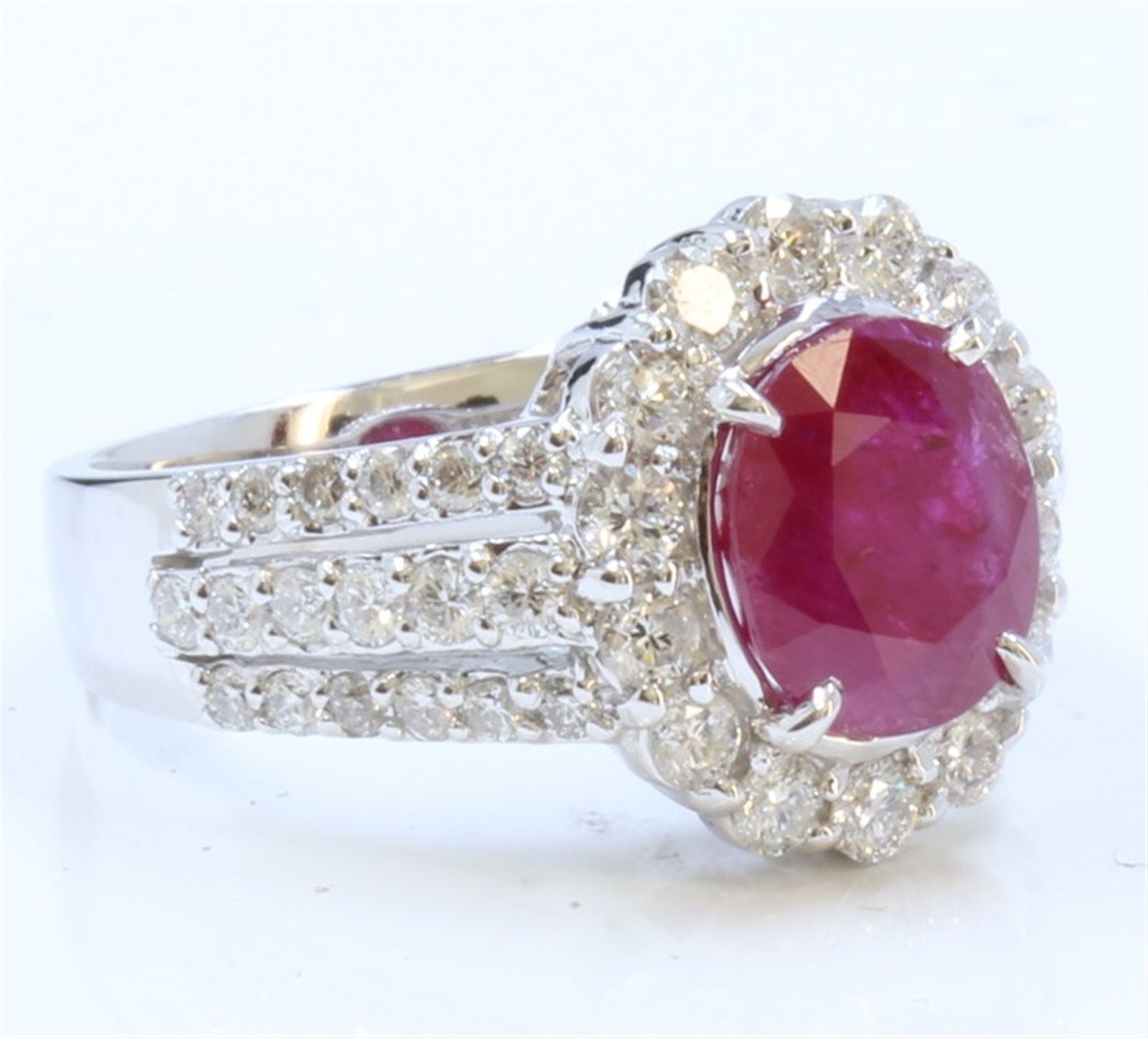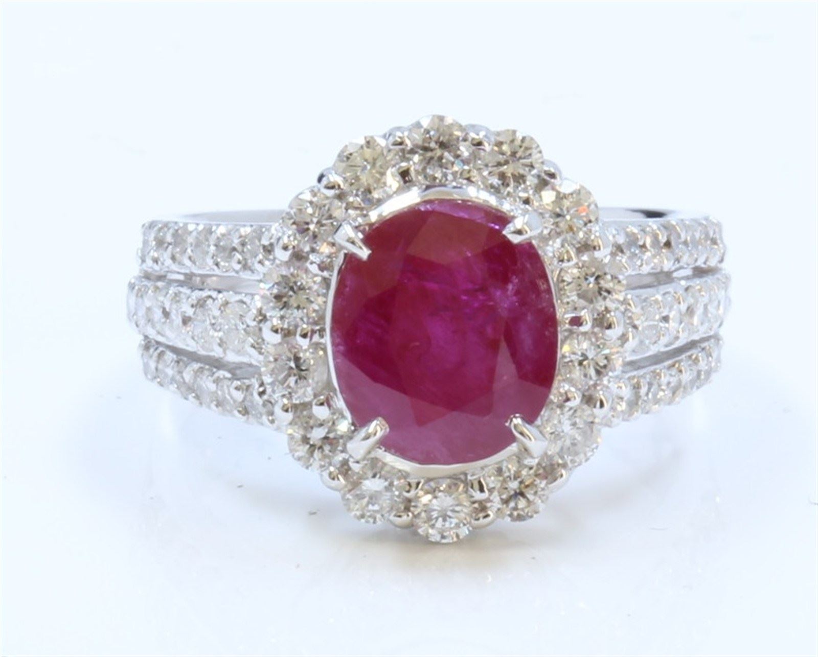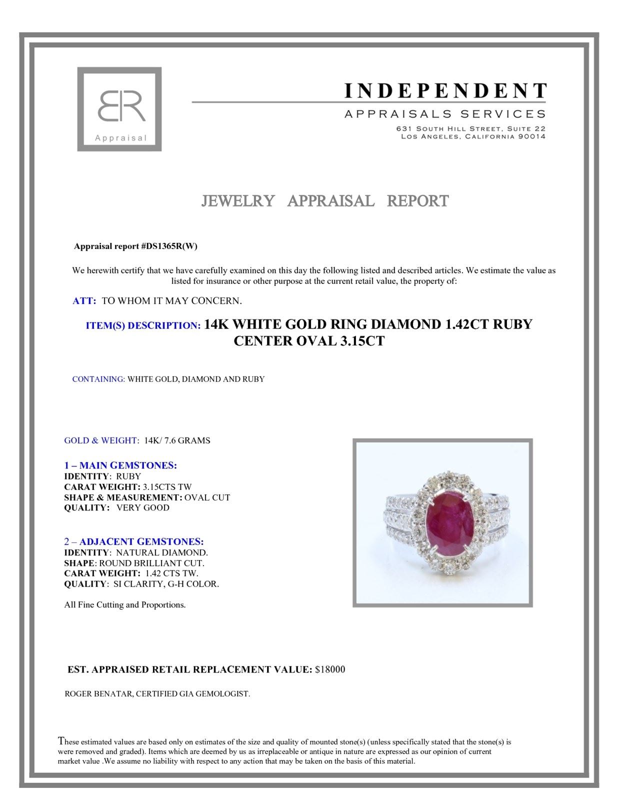 14K WHITE GOLD RING 7.6GRAM DIAMOND 1.42CT RUBY CENTER OVAL 3.15CT