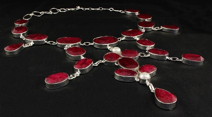 RUBY CORRUNDUM 132.50GRAMS SILVER STATEMENT NECKLACE **|**|** 18.5X5.0 INCHES MIX SHAPE RUBY CORRUNDUM W/ FRESHWATER PEARLS SILVER STATEMENT NECKLACE ; MSRP: $4800