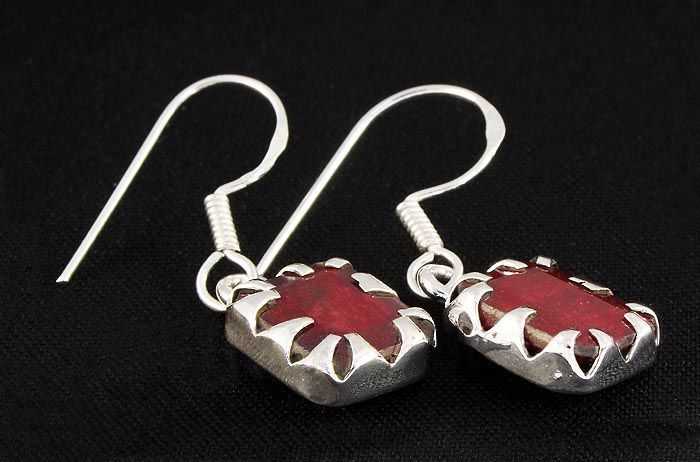RUBY CORRUNDUM 16.70CTW SILVER HOOK EARRING **|**|** STERLING SILVER EMERALD SHAPE EARRING WITH 10X7MM APPROX RUBY CORRUNDUM GEMSTONE ; MSRP: $100