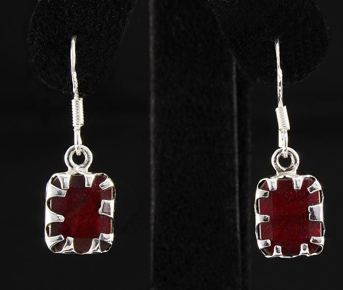 RUBY CORRUNDUM 16.70CTW SILVER HOOK EARRING **|**|** STERLING SILVER EMERALD SHAPE EARRING WITH 10X7MM APPROX RUBY CORRUNDUM GEMSTONE ; MSRP: $100