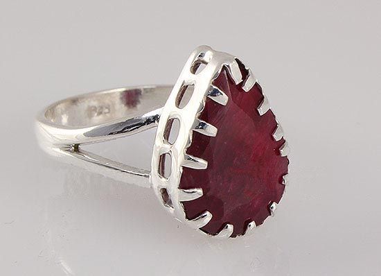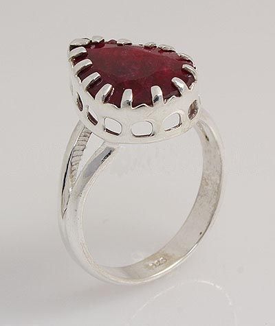 RUBY CORRUNDUM 19.30CTW UNIQUE DESIGN .925 RING **|**|** STERLING SILVER PEAR RING WITH 15X10MM APPROX RUBY CORRUNDUM GEMSTONE ; MSRP: $200
