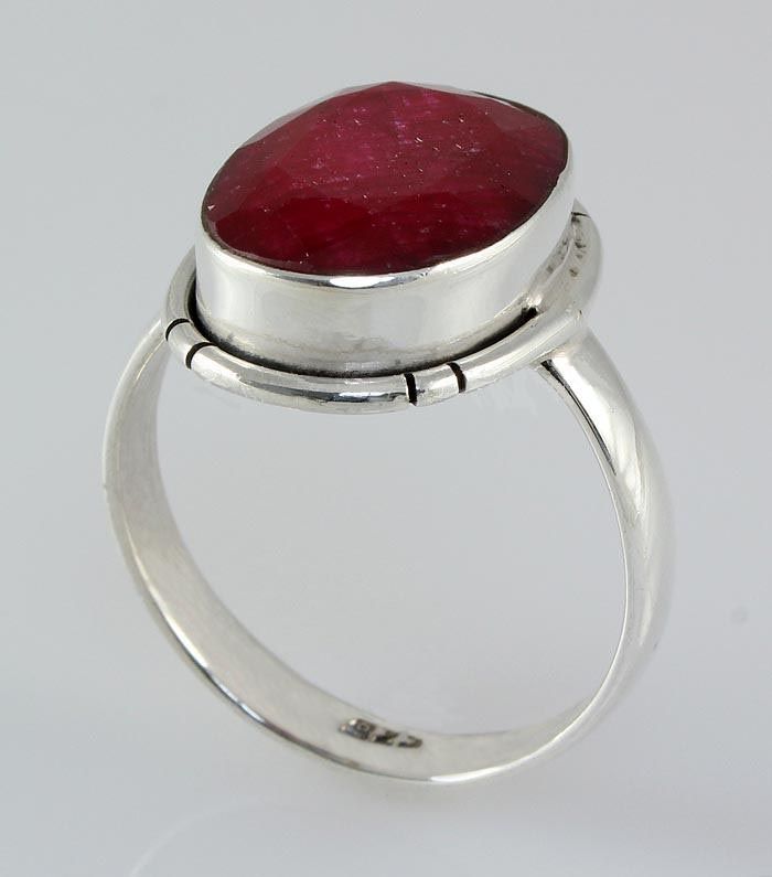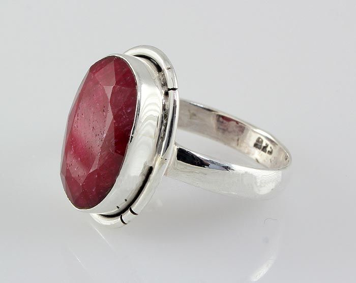 15X12MM OVAL SHAPE RUBY CORRUNDUM BEZEL TYPE SILVER RING; SIZE 7