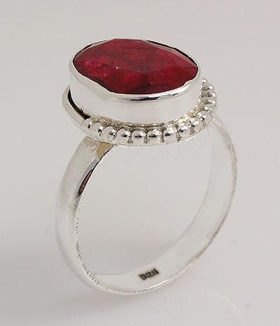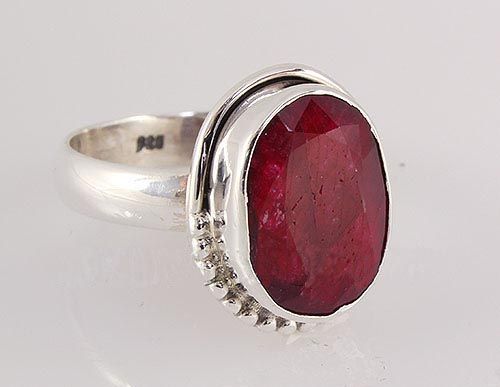 STERLING OVAL RING WITH 13X9MM APPROX RUBY CORRUNDUM GEMSTONE