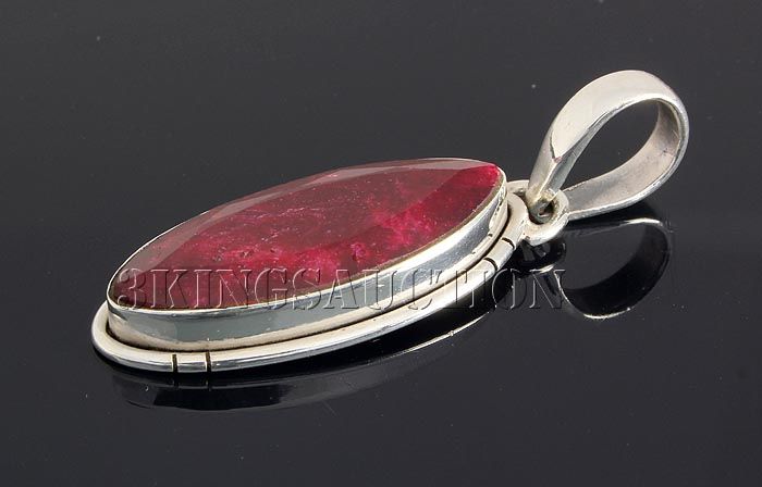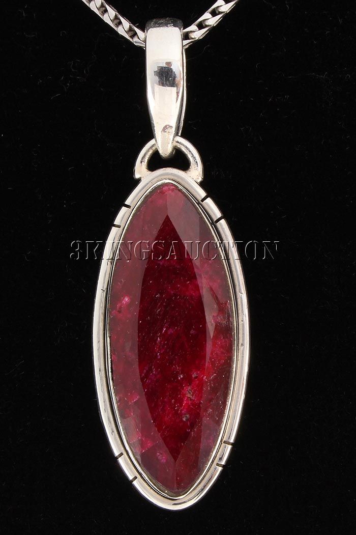 RUBY CORRUNDUM 26.22CTW STERLING SILVER PENDANT **|**|** 27X11MM MARQUISE SHAPE RUBY CORRUNDUM BEZEL TYPE SILVER PENDANT ; MSRP: $300