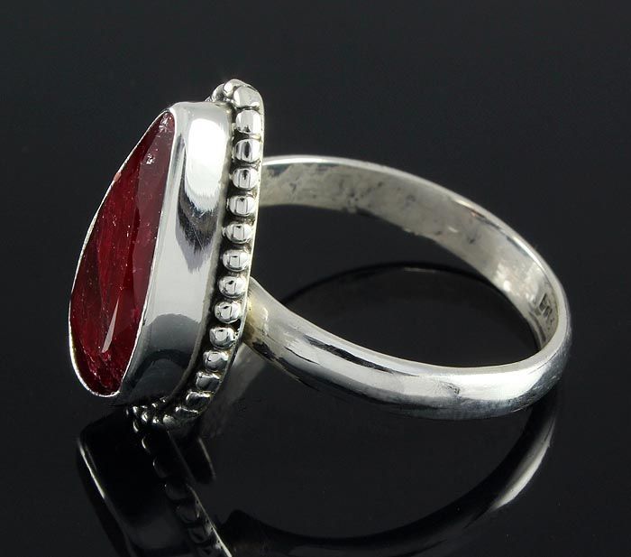 RUBY CORRUNDUM 26.60CTW STERLING SILVER RING **|**|** 17.30X9.81MM PEAR SHAPE RUBY CORRUNDUM SILVER RING; SIZE 8.5 ; MSRP: $300