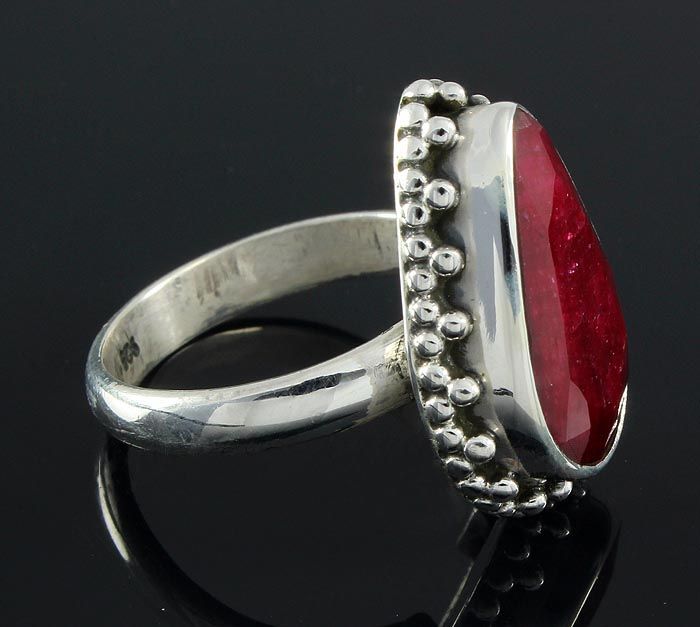 RUBY CORRUNDUM 26.94CTW STERLING SILVER RING **|**|** 16.85X10.86MM PEAR SHAPE RUBY CORRUNDUM SILVER RING; SIZE 5 ; MSRP: $300