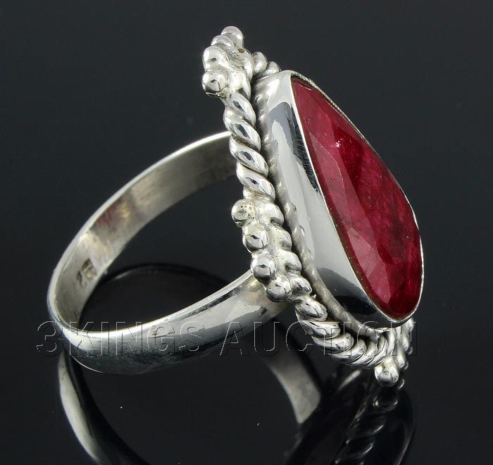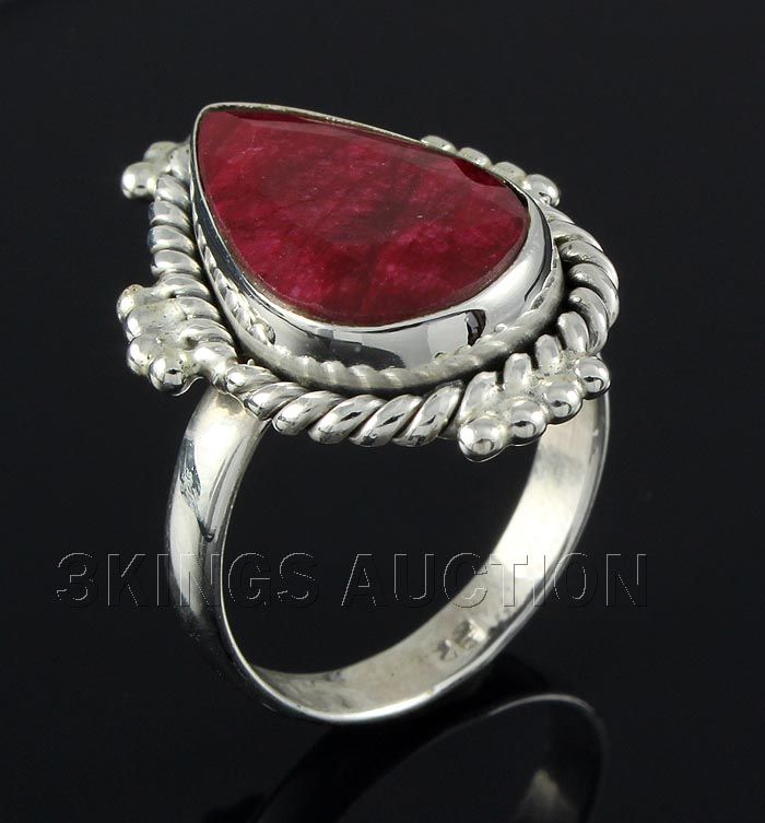 RUBY CORRUNDUM 27.05CTW STERLING SILVER RING **|**|** 17.65X11.23MM PEAR SHAPE RUBY CORRUNDUM ANTIQUE DESIGN SILVER RING; SIZE 7 ; MSRP: $300