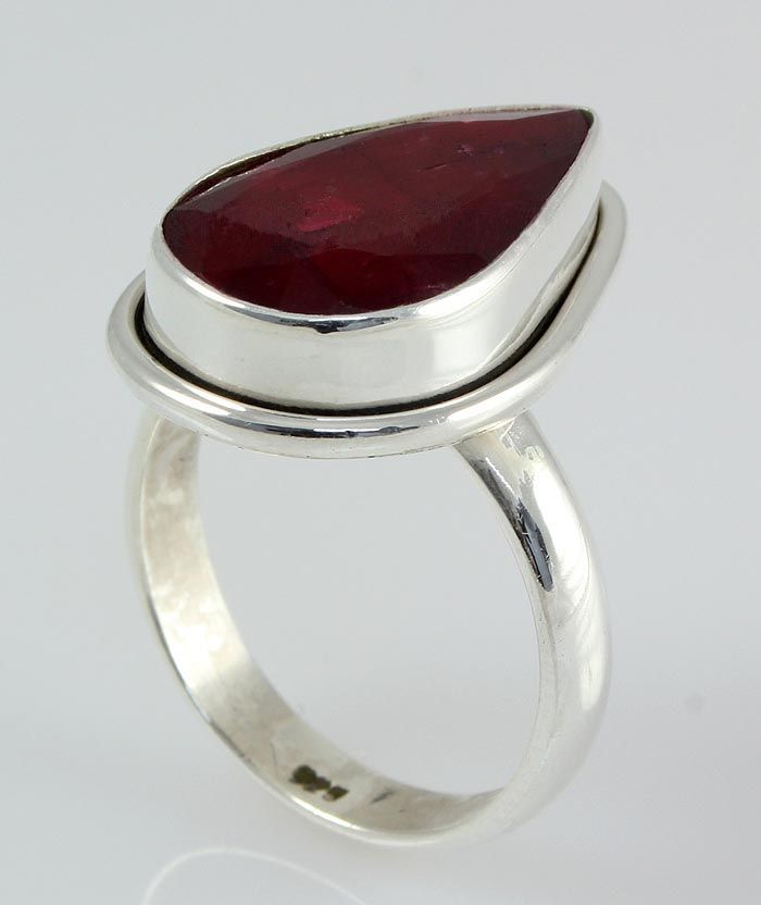 18X12MM PEAR SHAPE RUBY CORRUNDUM BEZEL TYPE SILVER RING