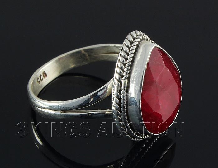 RUBY CORRUNDUM 28.28CTW STERLING SILVER RING **|**|** 15.50X12.78MM PEAR SHAPE RUBY CORRUNDUM SILVER RING; SIZE 7.5 ; MSRP: $300