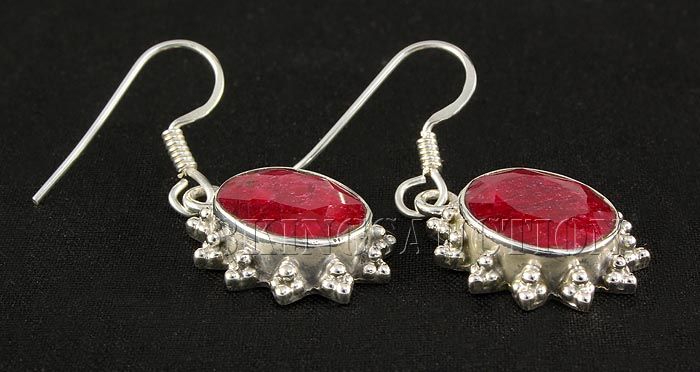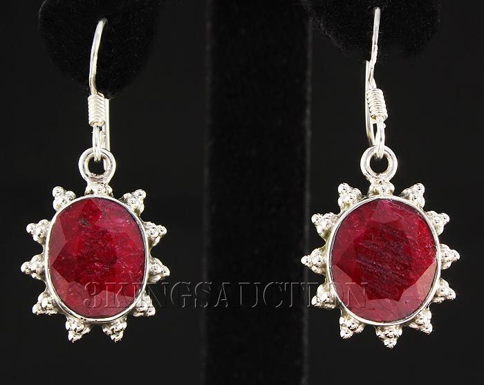 RUBY CORRUNDUM 29.53CTW SILVER HOOK EARRING **|**|** 12-13X10-11MM OVAL SHAPE RUBY CORRUNDUM FLOWER DESIGN SILVER HOOK EARRING ; MSRP: $300