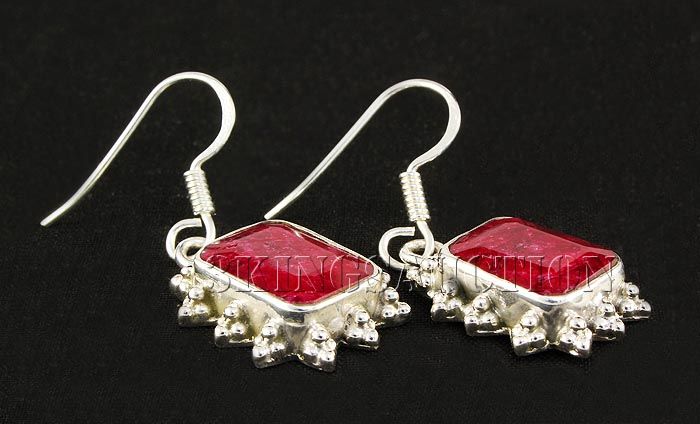 RUBY CORRUNDUM 34.82CTW SILVER HOOK EARRING **|**|** 12.42X10.02MM EMERALD SHAPE RUBY CORRUNDUM SILVER HOOK EARRING ; MSRP: $400