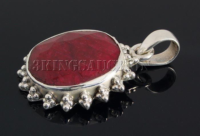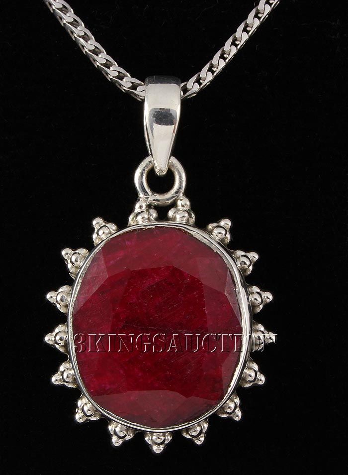 RUBY CORRUNDUM 36.42CTW STERLING SILVER PENDANT **|**|** 19X17MM OVAL SHAPE RUBY CORRUNDUM FLOWER DESIGN SILVER PENDANT ; MSRP: $400