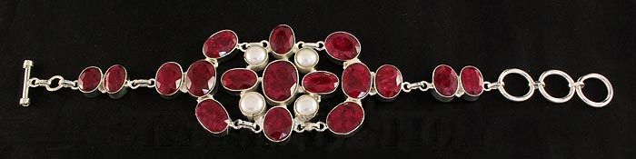 RUBY CORRUNDUM 47.85GRAMS FASHION SILVER BRACELET **|**|** 8.0X1.8 INCHES OVAL SHAPE RUBY CORRUNDUM W/ FRESHWATER PEARLS SILVER BRACELET ; MSRP: $1400