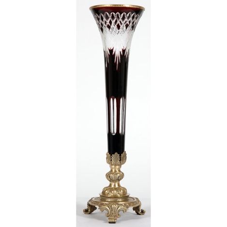 "RUBY FLOWER VASE" - HAND CUT CRYSTAL AND METAL DESIGN - RUBY CRYSTAL AND HAND FORGED MET - GLASS AND METAL - DIMENTIONS - 5 DIA X 15.5H - WEIGHT - 6.25 LB