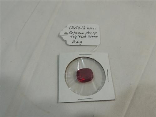 RUBY GEM STONE 13.5X12MM OCTAGON FLAT TOP CUT. AS SHOWN. VIEW PICTURE FOR DETAIL.