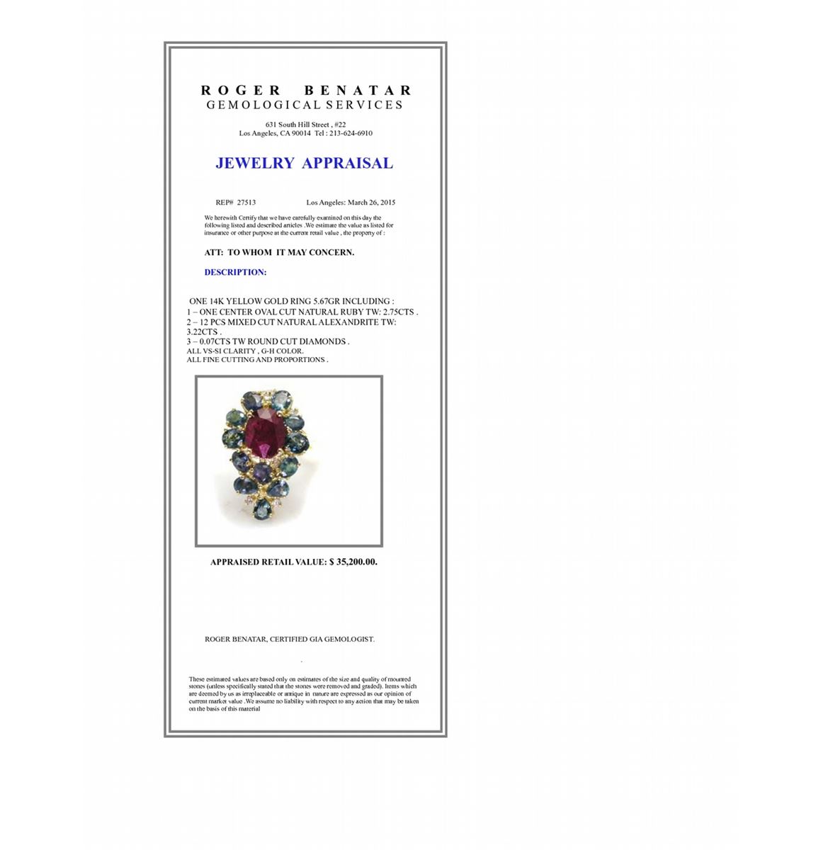 RUBY OVAL 2.75CT, 14K Y/G RING 5.67GRAM / ALEXANDRIT OVAL 3.22CT