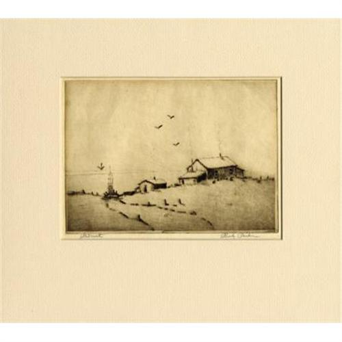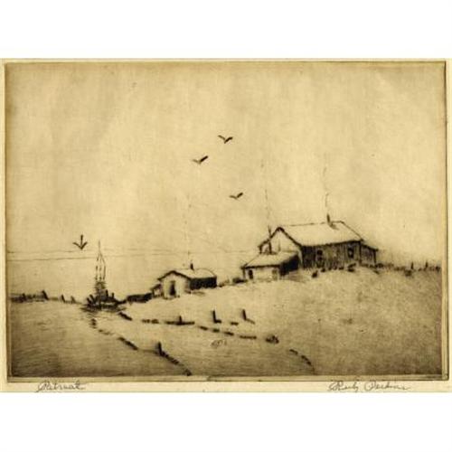 <B>RUBY PERKINS (dec.)</B></I><BR><I>Retreat</B></I><BR>Etching on paper<BR>5 x 7 inches (12.7 x 17.8 cm)<BR>Signed lower right<BR>Titled lower left<BR><BR> Inscribed verso:<BR><I>First lesson at Crozier evening school (Old Bryan H.S.) with Frank Klepper</B></I><B>Condition Report:</B> Excellent condition. Unframed.<BR><BR><b>Shipping:</b> Requires 3rd Party Shipping (<a target="_blank" href="http://www.heritageauctions.com/common/shipping.php">view shipping information</a>)