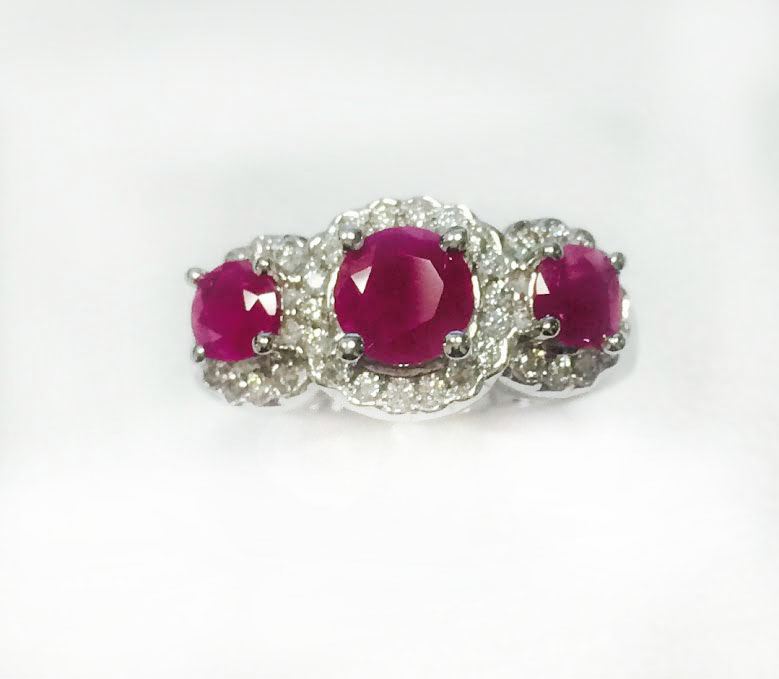 RUBY RD 1.87CT, 14K W/G RING 5.20GRAM / DIAMOND 0.31CT