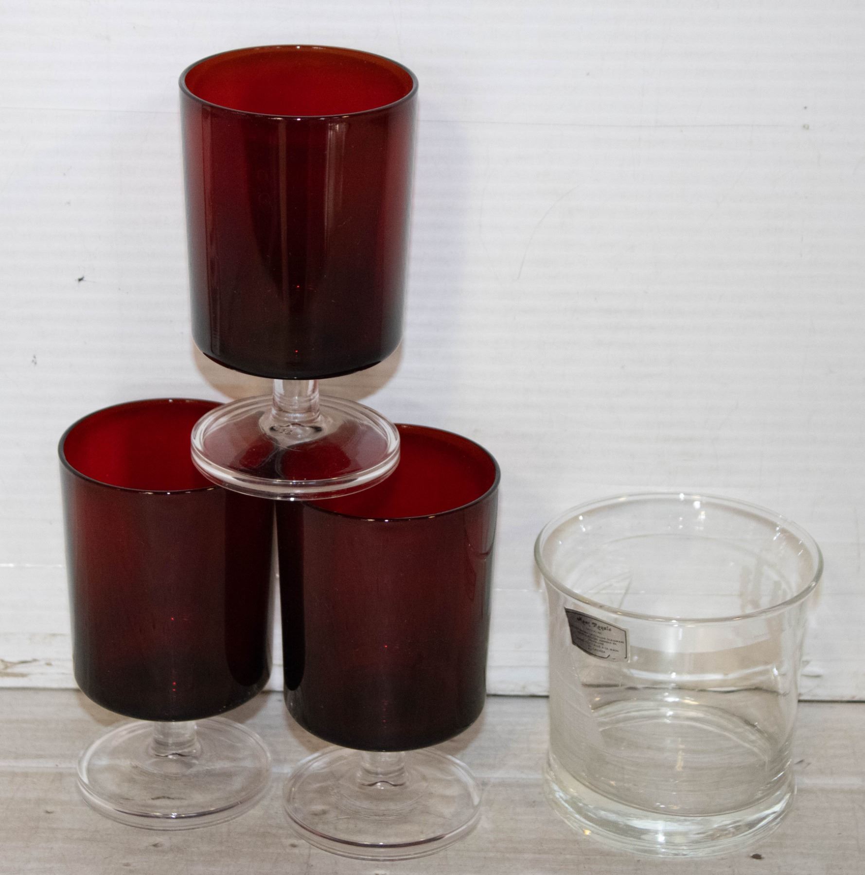 RUBY RED 1970'S WINE GOBLETS , MONT ROYAL CRYSTAL