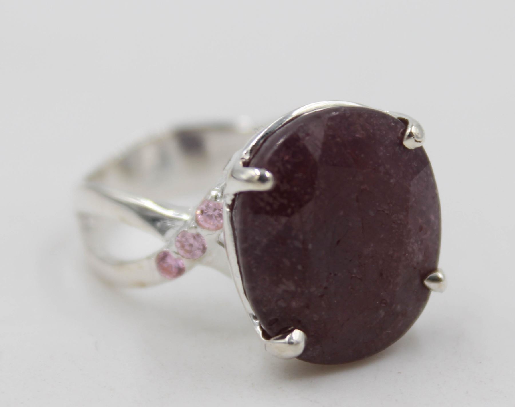 RUBY STERLING SILVER GEMSTONE RING, NEW, SIZE 8