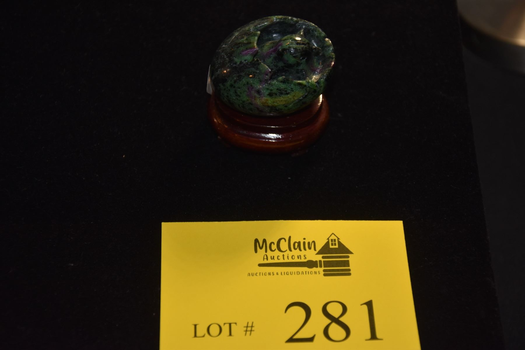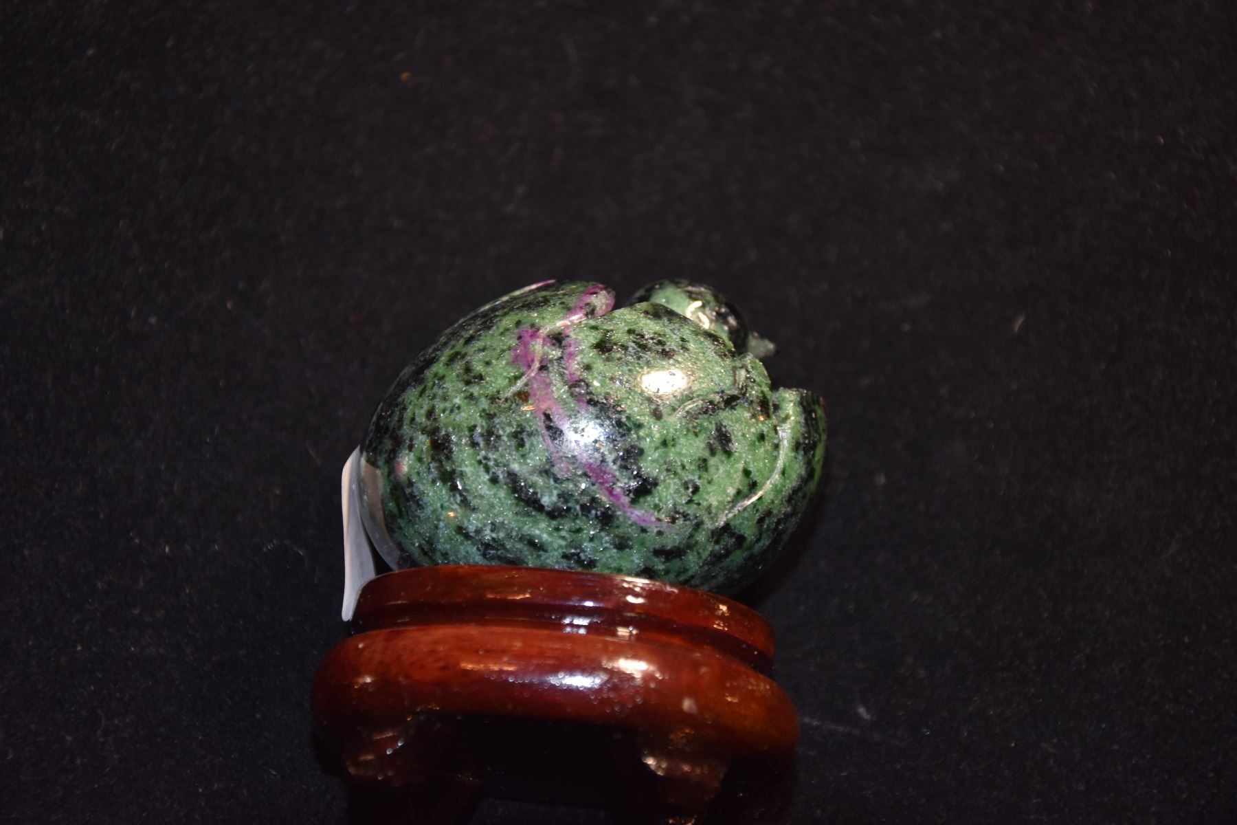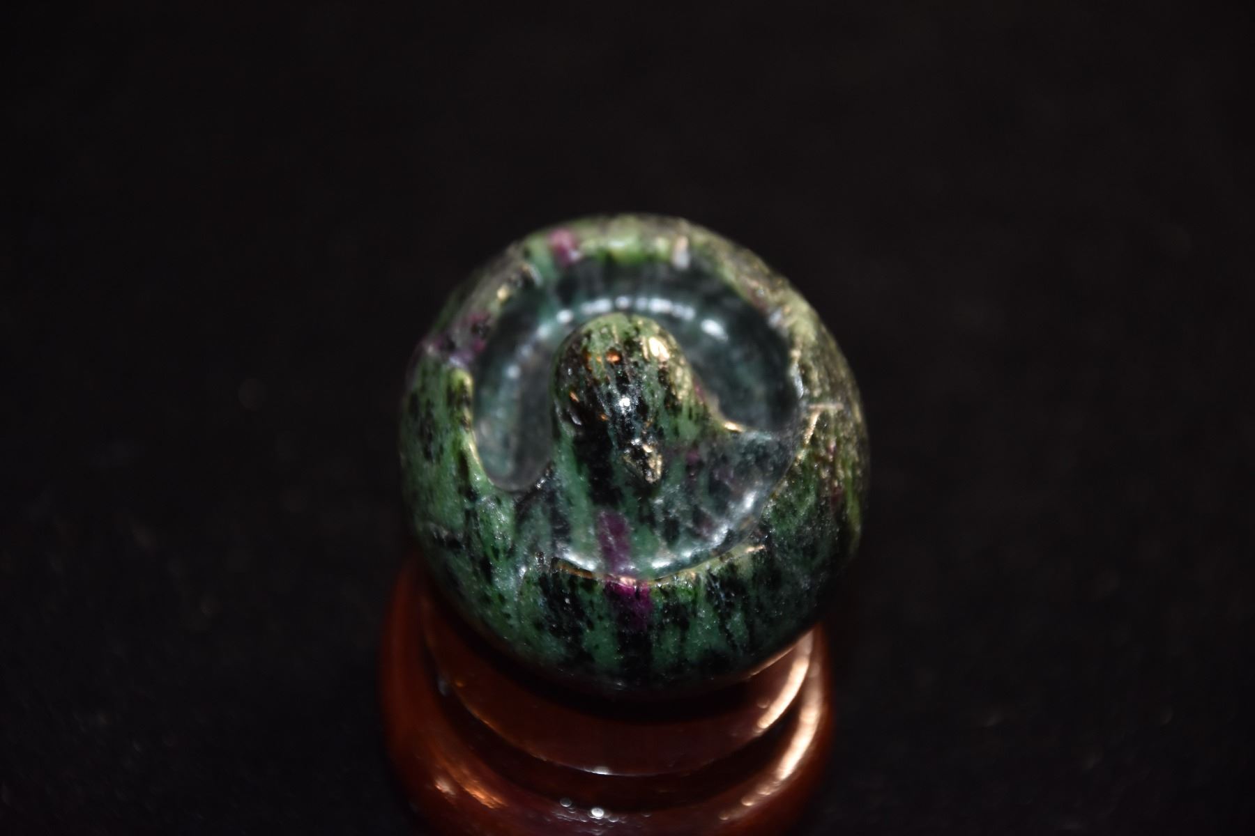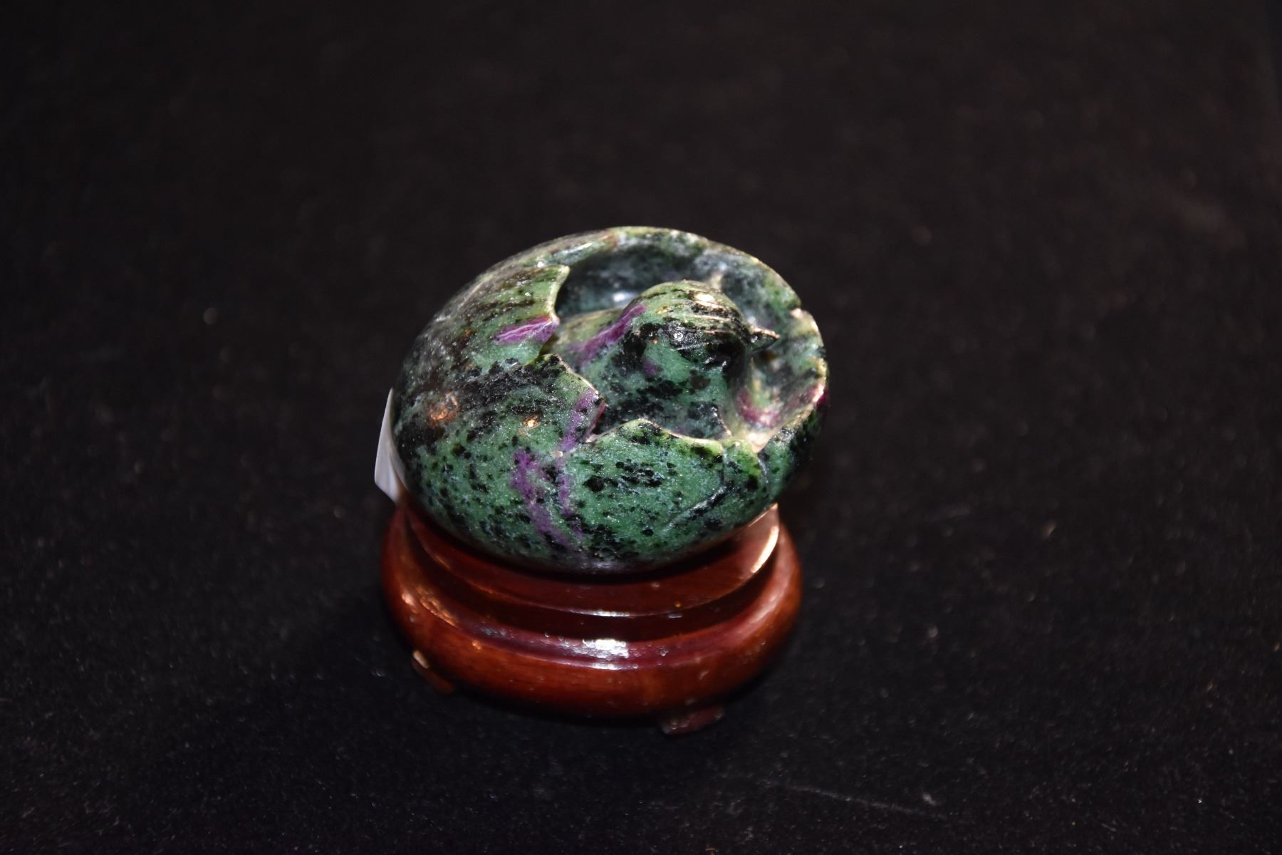 RUBY STONE HATCHLING IN EGG ON WOODEN STAND