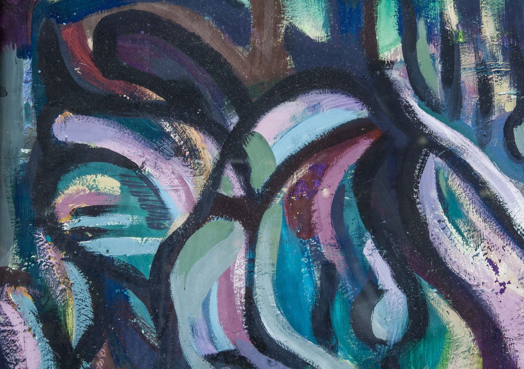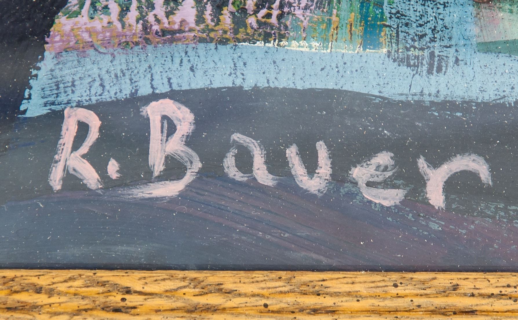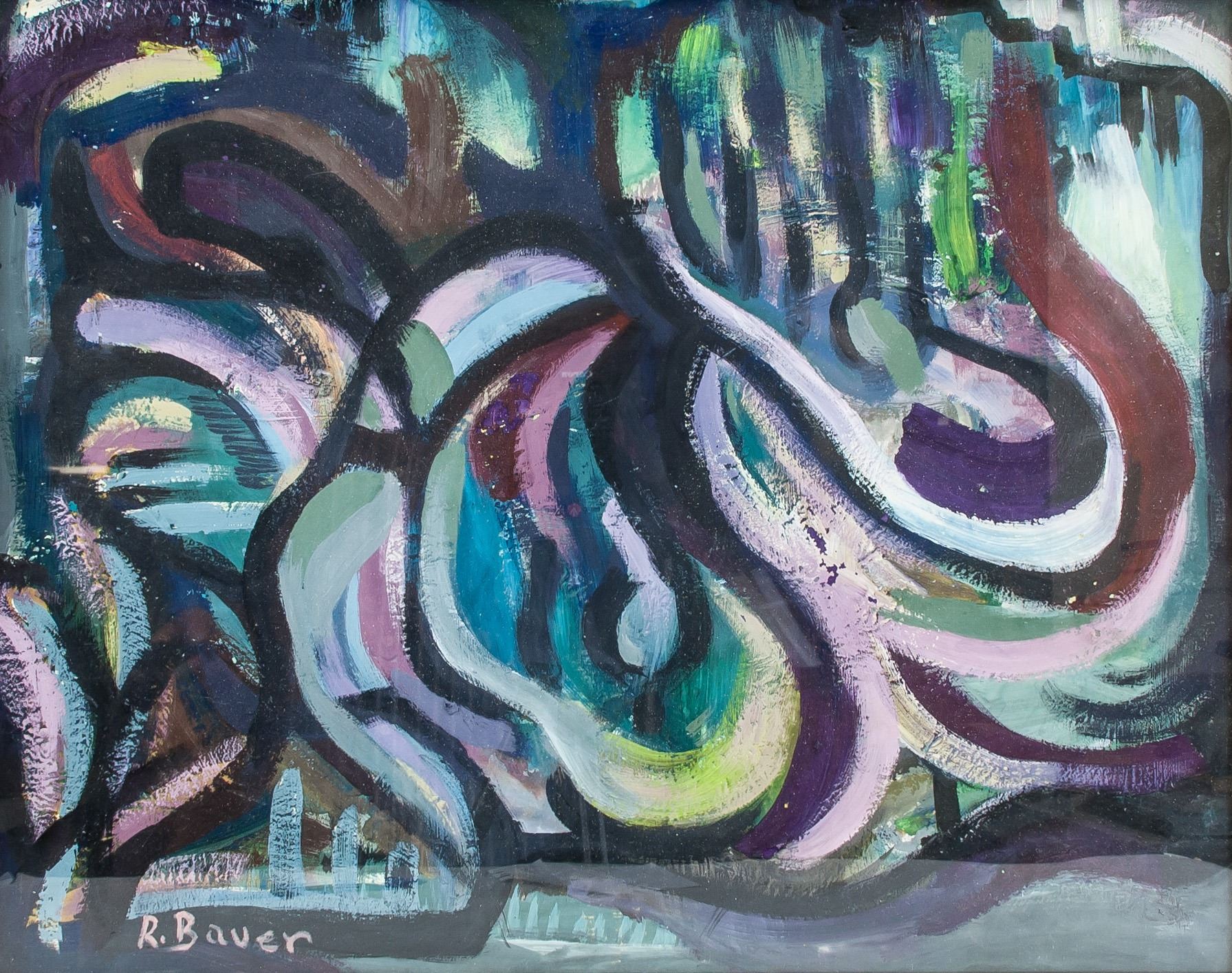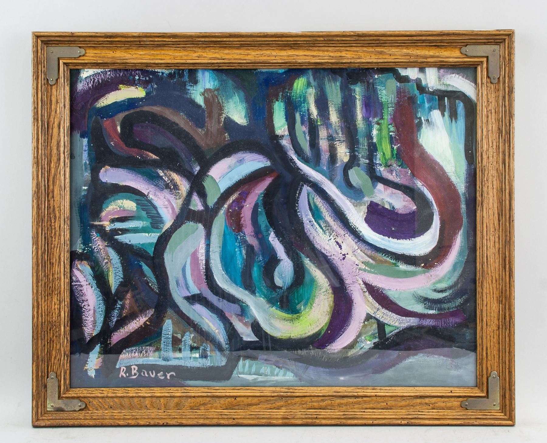 Gouache on paper. Featuring abstract composition. Signed and attr. Rudolf Bauer (German, 1889-1953) on the lower left corner. 14.6 x 18.5 in. (37 x 47 cm) Rudolf Bauer was a German-born painter who participated in exhibits at the famed avant-garde gallery, Der Sturm, in Berlin. His lyrical abstractions, were included in several group shows with artists like Wassily Kandinksy, Marc Chagall, and Paul Klee. Richly colored and composed with pristine shapes, as seen in his Blue Triangle (1936), his works evoke a hidden mysticism. Born on February 11, 1889 in Lindenwald, Germany (now Poland), Bauer studied briefly at the Academy of Fine Arts in Berlin. In 1930, Solomon R. Guggenheim, persuaded by the artist-curator. PROVENANCE: Southern Ontario estate