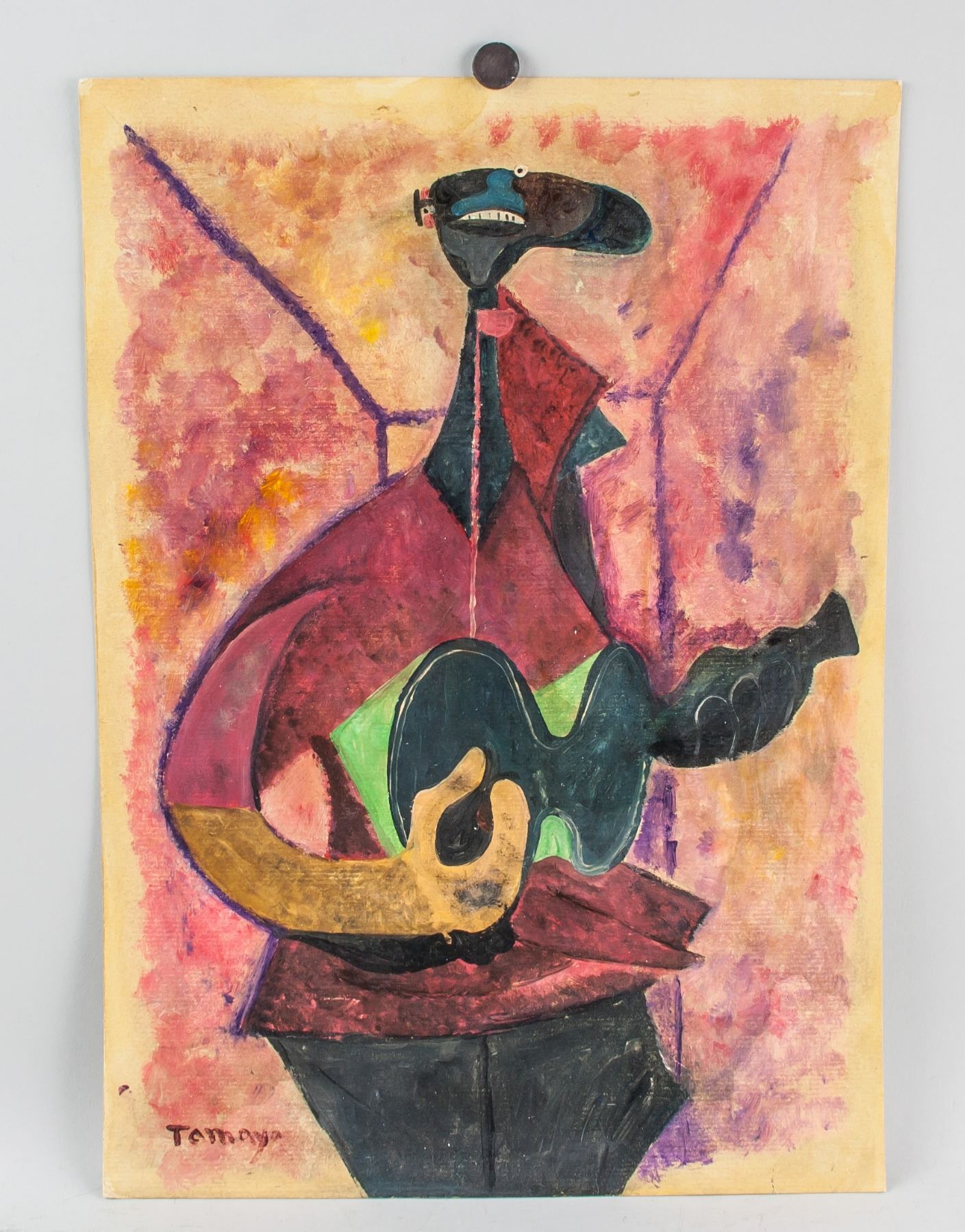 Gouache on paper. Featuring cubist portrait. Signed and attr. Rufino Tamayo (Mexican, 1899-1991) on the lower left corner. 48 x 34 cm (18.9 x 13.4 in.) Rufino Tamayo was a Mexican painter and printmaker known for his large-scale murals and vivid use of color. Like Diego Rivera, David Alfaro Siqueiros, and Jose Clemente Orozco, Tamayo helped garner international attention for Mexican art. Influenced by his pre-Columbian heritage as well as Cubism and Surrealism, Tamayo portrayed vernacular subjects like watermelons and animals in a unique formal vocabulary. “Art is a means of expression that must be understood by everybody, everywhere,” he stated. “It grows out of the earth, the textures of our lives, and our experience.” Born on August 26, 1899 in Oaxaca, Mexico, Tamayo left the San Carlos Academy of Fine Arts after a year and began to teach himself. He moved to New York in the 1930s after having a falling out with the politically driven Rivera and Siqueiros in his home county. Eventually returning to Mexico in 1959, he founded the Museo Tamayo Arte Contemporaneo in Mexico City and the Museo Rufino Tamayo in his birthplace of Oaxaca during the early 1980s. The artist continued to produce some of his most compelling works including Moon and Sun (1990) right up until his death on June 24, 1991 in Mexico City, Mexico at the age of 91. Today, his works are held in the collections of The Museum of Modern Art in New York, the Art Institute of Chicago, and the Walker Art Center in Minneapolis, among others. PROVENANCE: Private estate (Perugia, Italy)