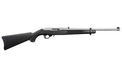 Ruger, 10/22 Carbine, Semi-Automatic Rifle, 22 LR, 18.5" Barrel, Clear Satin Finish, Stainless Steel, Black Synthetic Stock, Adjustable Rear and Gold Bead Front Sight, 10Rd