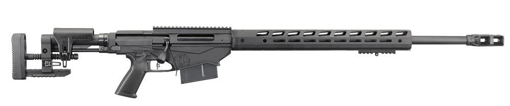 RUGER 300PRC 26" HEAVY CONTOUR WITH RUGER MAGNUM MUZZLE BRAKE TYPE III BLACK HARDCOAT ANODIZED FINISH RUGER PRECISION MSR ADJUSTABLE FOLDING STOCK 18" ALUMINUM FREE FLOAT HANDGUARD W/MAGPUL M-LOK SLOTS ON ALL FOUR SIDES 30MOA PICATINNY RAIL (2) 5RD MAGAZINES