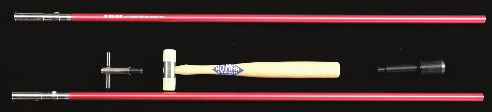 Ruger 410 ga. conversion tube set for 28 ga. Red Label O/U shotgun with 28" barrels. Ruger part number 90184. Includes mallet, choke wrench, removal tool and clear plastic factory package. CONDITION: entire set appears new and unused. (02-21368/NW). $500-750.