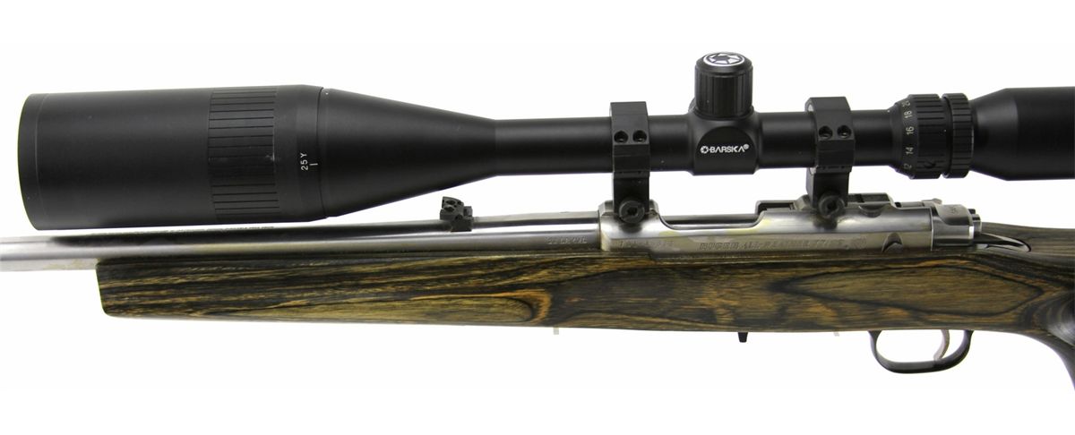 RUGER 77/22 ALL WEATHER RIFLE LAMINATE STOCK Ruger Model 77/22 All Weather stainless steel rifle, with laminate right handed thumbhole stock, and 6.5-20x Barska scope. Type: rifle Manufacturer: ruger Model: 77/22 Caliber / Gauge: .22lr Serial Number: 70148833 Condition: Overall very good condition