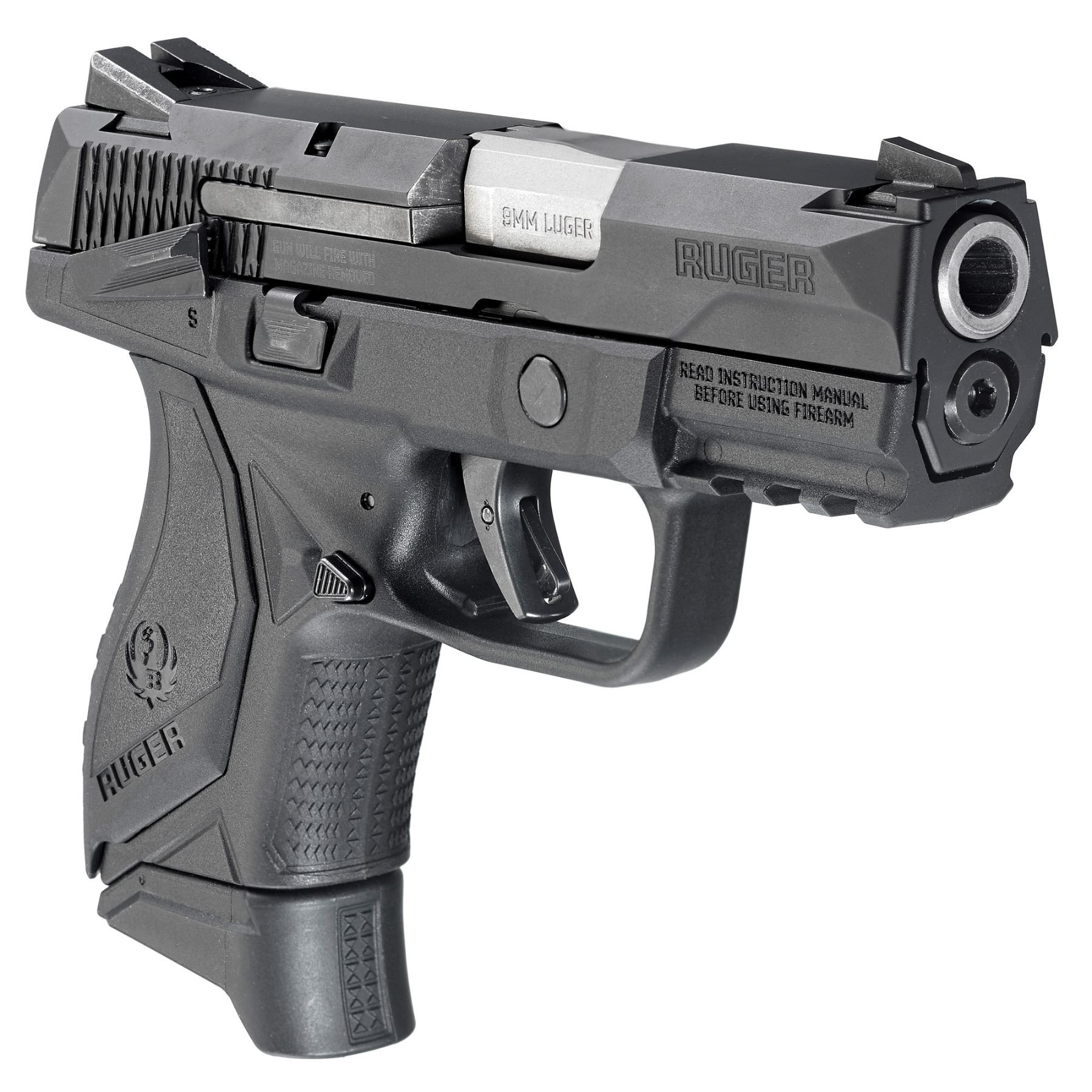 Ruger, American, Centerfire Pistol, 9MM, 3.55" Barrel, Polymer Frame, Black Finish, 1-17Rd and 1-12Rd Magazines, Novak LoMount 3-Dot Sights, Ambidextrous Slide Stop