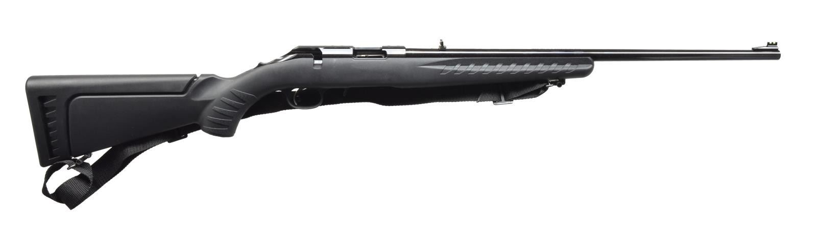 Cal. 22 Mag. S# 833-05832. Bbl. 22". Black synthetic stock allowing for interchangeable cheek pieces. Open sights, black nylon sling w/ detachable swivels, extended mag. release & Marksman trigger. Williams fiber optic front sight & standard folding rear sight. Grooved receiver additionally drilled & tapped for scope mts. MAGS: 1 factory 9 rd. UNATTACHED ACCESSORIES: original box & packaging to include extra stock module. CONDITION: all aspects near excellent; appears new. (20-1508/NW). MODERN. $200-300.