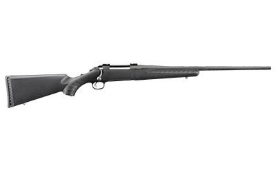 The Ruger American features an ergonomic, lightweight synthetic stock designed for quick, easy handling and blends a classic look with modern forend contouring and grip serrations. The one-piece, three-lug bolt with 70 degree throw provides ample scope clearance and utilizes a full diameter bolt body and dual cocking cams for smooth, easy cycling from the shoulder.