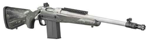 RUKM77GS308W PRODUCT DETAILS FAMILY:77 Centerfire Series MODEL:Gunsite Scout Rifle TYPE:Rifle ACTION:Bolt Action FINISH:Matte Stainless STOCK/FRAME:Laminate Stock STOCK/GRIPS:Laminate SPC FEATURE:Threaded Barrel Model CALIBER/GAUGE:308 Win CAPACITY:10+1 BARREL:18" RATE-OF-TWIST:1-in-10 SIGHTS:Adjustable Rear / Fixed Front