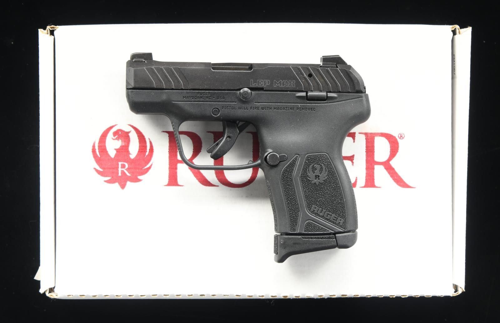 Cal. 380 ACP. S# 380923743. Bbl. 2.8". Mfg. 2022 as Model 13716 with black finish plus dovetailed sights (front night sight) on slide having front and rear cocking grooves. Higher capacity version of LCP model. MAGS: 1 factory 10 rd. with finger extension. UNATTACHED ACCESSORIES: factory box and packaging. CONDITION: all aspects near excellent; appears new. PROVENANCE: The Collection of Gun Sport Ltd. owned by Jon R. Thomas. (23-4211/NW). MODERN. $300-400.