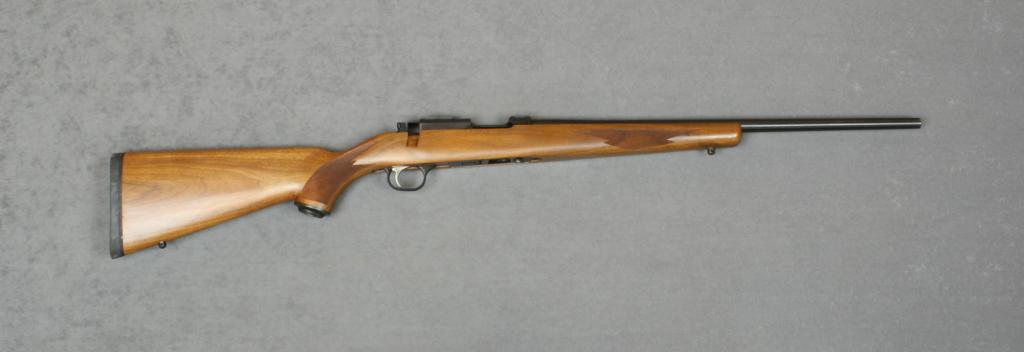 RUGER M-77/22, #701-47133, .22LR, 20" barrel, blued finish, checkered walnut stock, no sights. Rifle is in excellent condition showing minimal use, bore is excellent, stock is excellent with minimal storage andhandling marks. Factory box is included, in fair condition, with owner's manual, scope rings, and one magazine. Est. $250-500.