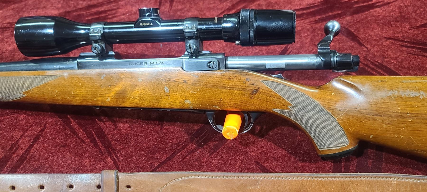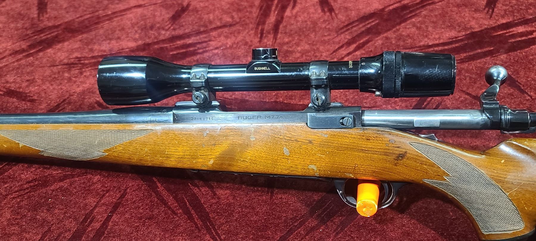 RUGER M77 .270 WIN - BOLT ACTION - 21" BARREL - DROP CLIP/PLATE - 4 AND 1 ROUND - COMES WITH BUSHNELL SCOPE CHIEF VI AND LEATHER SLING - S/N: 77-68346
